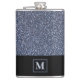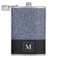 Ajoutez de l'élégance avec une parties scintillant en noir et argent (simulée) accessoire barware flask. Monogramme ou personnalisez en lettres gris argent et arrière - plan noir. Idée cadeau idéal pour les hommes, papa, petit ami, mari pour tout événement ou occasion.