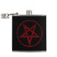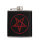 Pentagramme rouge, inversé, texturé en cercle, sur arrière - plan noir. Symbole occulte 666