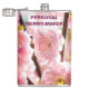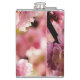 Plum à fleurs - Paradize rose. Vue rapprochée des fleurs entre les branches d'un prunier fleuri en pleine floraison. L'arbre ou l'arbuste est également connu comme amande fleurie. Fleurs festives roses. Thème du printemps. Voici un prune, un amandier, un cerisier. Cet arbre est tout. Il est originaire de Chine et est scientifiquement appelé Louiseania triloba, Amygdalus triloba et Prunus triloba. Il est considéré comme une cerise d'arbustes, certains l'appellent sakura. Plante très élégante et décorative. Drôle flacon de hanche personnalisable. Vous pouvez modifier ou supprimer deux lignes de texte Personal Merry-Maker.