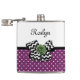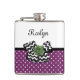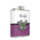 Montrez votre style personnel avec cette mignonne fiole de motif à pois mauve et blanche avec un arc de chevron noir et blanc tendance et un rose à ruban vert chic. Donnez à ce rétro violet et vert et au design moderne une touche personnalisée en ajoutant votre nom. Image imprimée plate, PAS le ruban de rosette réel et l'arc.