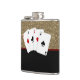 Classy rouge, noir et or arrière - plan et quatre as flacon de poker. Vous pouvez déplacer, redimensionner et supprimer les cartes de poker. Cette conception de flacon de poker et de jeu fonctionne bien pour un cadeau d'anniversaire de la personne, un cadeau de marié, un marié ou tout fan de jeu et de poker!