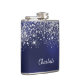 Flasques Poussière de paillettes argentées bleues nom écrit
