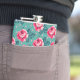Flasques Pretty Pink Roses and Polka Dot Pattern on Teal