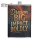 Un design audacieux et inspirant, avec l'expression "Dream Big Impact Boltly" dans un schéma coloré fascinant et captivant. Le texte est rendu dans une police dynamique et moderne, avec un sens de l'énergie et de la détermination. La composition globale est propre et impactée, encourageant les individus à embrasser leurs rêves et à aspirer à la grandeur.