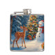 Flasques Scene d'arbre de Noël Cute Deer Fawn Snowman