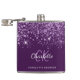 Un arrière - plan violet profond. Décoré avec de la poussière de parties scintillant imitation. Personnalisez et ajoutez un nom, des initiales monographiques et un nom complet. Le prénom est écrit avec un script de style moderne écrit à la main.
