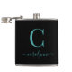Chic Elegant Turquoise Monogramme Script sur une fiole noire chic. Facile à customiser avec votre propre nom et vos détails. Parfait pour votre luxe ! Veuillez nous contacter à cedarandstring@gmail.com si vous avez besoin d'aide pour la conception ou les produits correspondants.