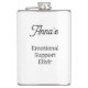 Ajoutez une touche d'humour et de personnalisation à vos essentiels avec cette élégante flasque de poche en acier inoxydable présentant la phrase « Élixir de soutien émotionnel » et un nom personnalisable en haut. Que ce soit pour un enterrement de vie de jeune fille, un cadeau d'anniversaire ou simplement une façon amusante de transporter votre boisson préférée, cette flasque élégante et durable est le compagnon idéal. Le design classique avec une typographie noire élégante sur fond blanc la rend à la fois chic et pratique.