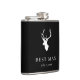 Tête de cerf blanc sur arrière - plan noir, fiole personnalisée. Comprend deux lignes pour le texte personnalisé. La couleur Arrière - plan peut être customisée.