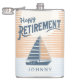 Toast aux aventures de retraite avec ce flacon personnalisé! Doté d'un coucher de soleil rétro vintage, orné d'un voilier gracieux, ce flacon est le compagnon idéal pour célébrer de nouveaux débuts. Personnalisez-le avec le nom du retraité pour un cadeau réfléchi et élégant.