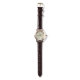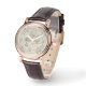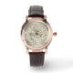 Flat Earth Azimuthal Equidistant Square Map Watch with Depiction of an Antique Vintage Flat Earth Map in a Square Setting of Stainless Steel on a Brown Croc Leather Watch Band.