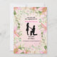 Beautiful engagement invitation card with a soft pink background, decorated with delicate pink flowers. Features a heartfelt photo of a man proposing to a woman, capturing the joy of the special moment. Perfect for announcing your engagement in a romantic and elegant way.