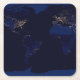Flat Map Of Earth Showing City Lights Of World Square Paper Coaster
