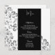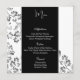 This Menu Card template is shown on the basic paper with a floral print design, script and standard text in White.