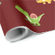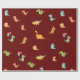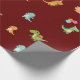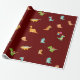 Flat Minimalist Cute Dinosaurs on Dark Red Wrapping Paper