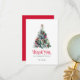 Express your gratitude by sending a heartfelt thank you card to your guests this Christmas. This charming card features a beautiful watercolor festive Christmas tree and classic red retro typography. Customize the message and include your family's name for a personal touch.