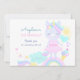 Flat Thank You Card for 3rd birthday with a funny unicorn, which is surrounded by cute pictures of a rainbow, cloud, sun, ice cream...