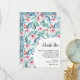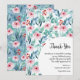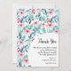 A Flat Thank You Card for a baby shower is decorated with charming watercolor plant images featuring soft pastel emerald and blue leaves, branches and soft pink roses.