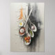 A striking composition of oversized white spoons filled with colourful ingredients—cherry tomatoes, garlic, lentils, herbs, and oil—arranged artistically on a textured abstract background of black, white, and orange. This kitchen-inspired painting blends realism and abstraction to celebrate the beauty of everyday cooking elements.