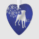 Ce joli ornement de vacances fera un merveilleux cadeau de conservation pour quiconque aime un Rottweiler! Il présente une silhouette argentée Rottie en face d'un jet de flocons d'argent orné. L'image est placée sur un arrière - plan bleu profond dégradé. L'arrière de l'ornement a le même arrière - plan bleu et des flocons de neige, et un champ de texte pour vous de customiser. Belle !