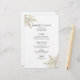 Customisez l'élégant Gold Snowflake sur White Winter Wedding Menu avec les détails du repas que vous pourrez servir à votre déjeuner de douche nuptiale de décembre, janvier ou février, dîner de réception matrimoniale ou brunch post mariage en ajoutant la salade ou le premier plat, entrée ou deuxième plat et dessert ou troisième plat. Personnalisez-le avec les noms de la mariée et du marié, l'emplacement du lieu et la date de l'événement. Cet élégant menu personnalisé de mariages d'hiver présente des flocons de neige de couleur dorée qui ornent les coins d'un arrière - plan blanc.