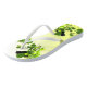 Les oiseaux noirs dans un arbre aux feuilles verts jaunes sont le thème de ces tongs d'animaux joyeux. Ces oiseaux adorables semblent se faire appeler.
