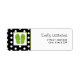 Étiquettes de adresse illustrant une paire de tongs verts à l'intérieur d'un cadre blanc avec garniture verte à gauche. Arrière - plan noir avec pois blancs et garniture verte. Personnalisez le bon côté avec votre nom et votre adresse. Recherchez des articles de papeterie, des cartes et plus encore chez Jill's Paperie.