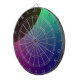 Cette magnifique carte de fléchettes présente une image numériquement créée qui ressemble au croissant d'une planète sombre entourée d'une aurore cosmique de vert, bleu, violet et rose.