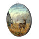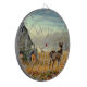 Une belle scène de ferme sur une planche de fléchettes en cage métallique.