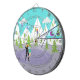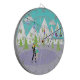 Cette Cible de flechettes de ski d'hiver de Retro a quelque chose pour tous. Le dessin animé pittoresque présente une chaîne de montagnes enneigée avec des cèdres verts. Un skieur solitaire, en rouge, orange et bleu roi, se balade sur la plus haute montagne. La neige continue de tomber des nuages dans le ciel turquoise. On peut voir les silhouettes de gens heureux qui se baladent dans les gondoles des remonte-pentes. Perché au-dessus des arbres, il y a un chalet de ski moderne du milieu du siècle, surélevé. A travers les murs en verre, on peut voir une beauté aux cheveux foncés reposant dans un fauteuil aux oeufs violets. Elle porte un chandail vert, un pantalon bleu marine et un lourd moulage blanc sur une jambe. Ne te sens pas trop désolé pour elle. Elle profite de la chaleur d'une cheminée en forme de cône verte d'olivier avec un feu rugissant. Elle a aussi une vue magnifique de deux patineurs romantiques sur une patinoire gelée et violette. L'homme du duo porte une combinaison noire avec un col jaune. Ses mains sont enveloppées autour de la taille de son partenaire. C'est une rousse magnifique dont les cheveux sont en queue de cheval. Elle porte une jupe bleue glace et une jupe verte en mousse de mer courte, gonflable. Ils ont le temps de vivre, mais espérons qu'ils remarquent la fissure dans la glace.