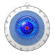 Les orbes bleues sont centrées sur un arrière - plan bleu clair. L'orbe rouge centrale est plus petite, l'autre est un cercle 3d bleu foncé solide, l'autre est une plus grande boule translucide. L'anneau extérieur est blanc.