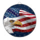 Cible de flechettes illustrée avec un drapeau américain patriotique et un imprimé graphique d'aigle. Customisez cet objet ou achetez tel quel.