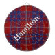 Élégante planche de fléchettes en plaid rouge, blanc et bleu réalisée dans le traditionnel motif en plaid tartan de Hamilton. Le texte en gras blanc s'exécute en diagonale, à travers le milieu. Personnalisez le texte pour vous-même ou comme une excellente idée cadeau.