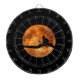 Cette conception présente une image élégante montrant le contour d'un chat sur la branche d'un arbre. La lune dans l'arrière - plan est pleine, brillant orange vif. Dans de nombreuses cultures occidentales, les chats noirs ont souvent été considérés comme des êtres mauvais, en particulier soupçonnés de travailler avec les sorcières et les arts sombres, ce qui explique pourquoi les images d'eux sont souvent vues à Halloween.