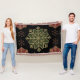 The design features a green and red floral patchwork made of intricately sewn snowflakes, accented with gold trimming.