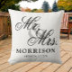 Flemish Minimalist Elegant Script Mr and Mrs Throw Pillow