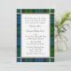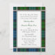 Lovely Scottish tartan plaid wedding invitation, done with a colourful Fletcher clan plaid. A white coloured text area, in the middle is bordered with a pewter tone edging. Text is in black and green and is fully customizable to suit your wedding needs. Personalize text as is, or customize to change colours and font styles.