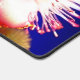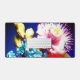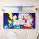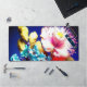 Ce tapis de bureau a un tableau de fleurs dessus.