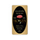 Étiquette noir avec le mot HONEY écrit & reflété en or métallique sur arrière - plan noir avec double bordure en or. Illustration fleur sauvage. Liste précalculée des conversions de poids net miel. Texte modifiable : "pur, brut."