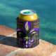 Beaded fleur-de-lis can cooler Mard Gras colours,purple,green,gold ,beer and soda Quzie