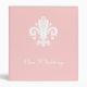 Our wedding binder. White fleur-de-lis on pink background. Replace placeholder text with your info.