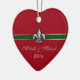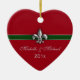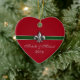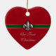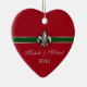 Your first Christmas together as a couple is special. Commemorate that first holiday season with this heart shaped Green, Red and Silver design Fleur de Lis ornament personalized on the front with your names and wedding date, or change the text to the year. The back reads Our First Christmas. Keep the text or change it using the template.