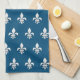 Fleur de Lis in White on Deep Cobalt Blue Kitchen Towel