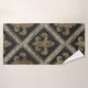 Fleur-de-lis mosaic tile pattern black and gold bath towel set