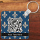 Fleur de Lis Pattern, French, Royal, Cream, Blue Keychain