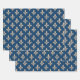 Fleur de Lis Pattern, Royal French, Cream on Blue Wrapping Paper Sheet