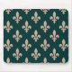 Fleur de Lis Pattern, Royal French Cream on Green Mouse Pad