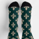 Fleur de Lis Pattern, Royal French Cream on Green Socks