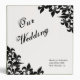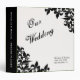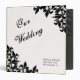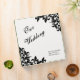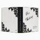 Organize your dream wedding with this binder featuring an original Fleur de lis pattern in black on a white background with black text. The spine of the binder is black with white text. Personalize with your names and wedding date and location using the template.