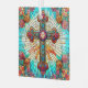Multi coloured, vibrant Fleur-de-list style cross with flowers in stained glass design